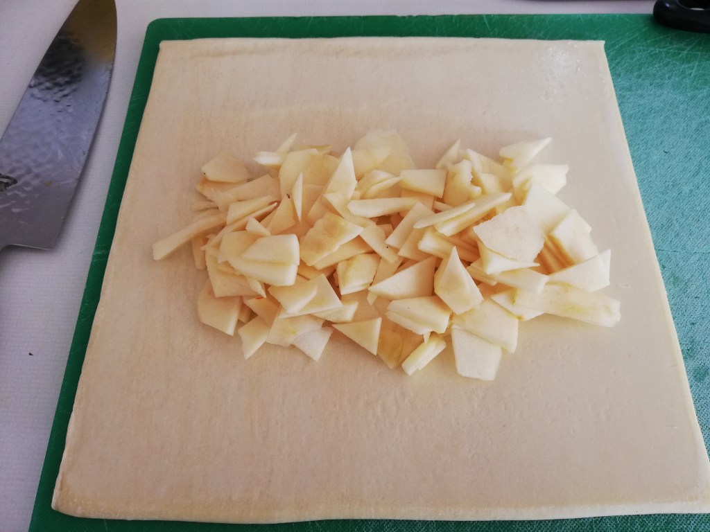 Far better than throwing it away is to transform it into a very quick dessert with a sheet of pastry and a few simple ingredients that you have in your kitchen. Create a quick and easy apple pie, which can also be vegan. You can use shortcrust or puff as it will work with both. I always keep a packet of pastry in the freezer for just this type of occasion.