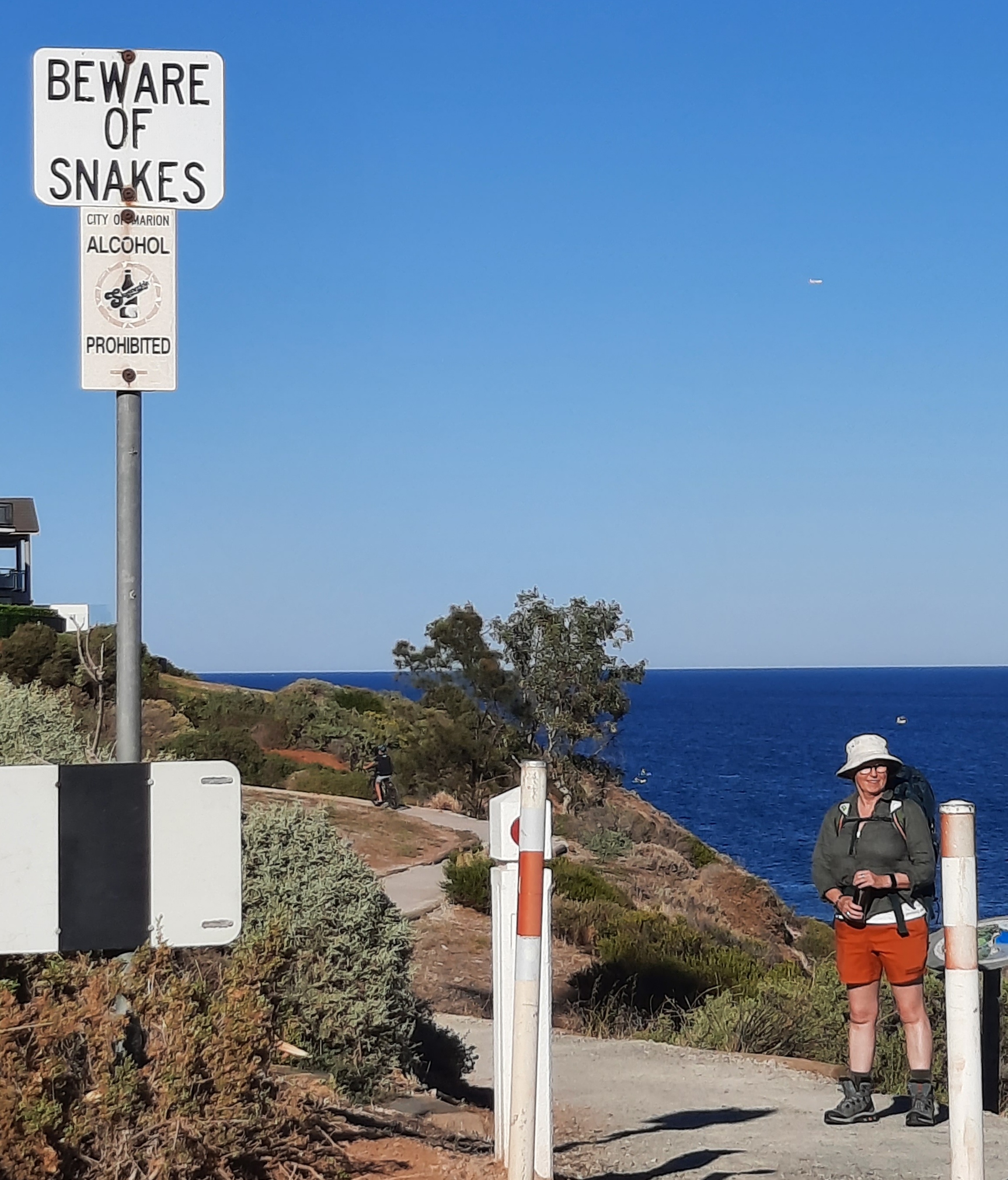 After a few kms the houses petered out, the countryside changed and we started joined the Marion Coastal Reserve Trail. The beaches turned to rocky foreshore and the flat terrain to a series of steep ascents and descents.