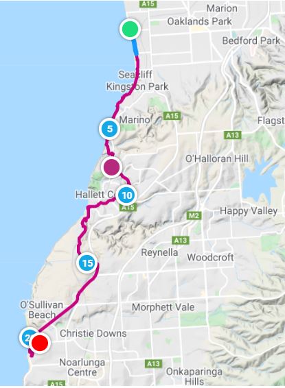 Day 2. When we left The Etsy on Saturday morning, we had no idea how far the day’s adventures would take us. We guessed that 20 or so kms would land us somewhere between O’Sullivan’s Beach and Noarlunga.