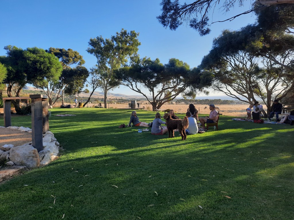 At 3:30pm we arrived at Sellick’s Beach to purchase dinner supplies, but were still a 2 hour walk from our destination. And so we were delighted to hear calls of “You Made It” from across the road. Our fellow walker, Erin, as we were to later learn, had arrived a few minutes before us and was off up the hill to attend a friends’ Cellar Door opening. It was directly in our path and she invited us to join her with the added bonus of seeing if she could secure us a lift.