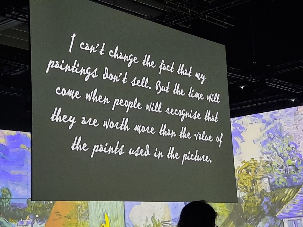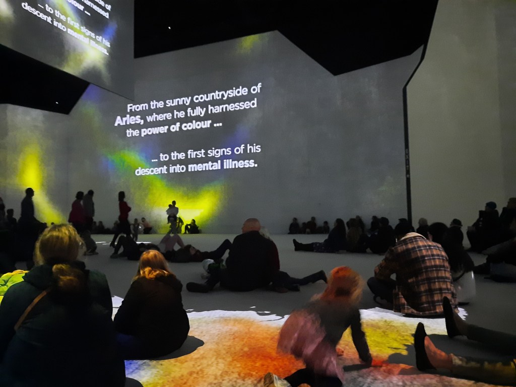 The Lume sells itself as “an epic adventure in art” that “transforms the world’s finest art into fully immersive sensory encounters”. They intend to hold many different exhibitions over the years – w We were there to see the inaugural exhibit, Van Gogh’s artworks. Tickets cost $49 each with timed entry and unlimited stay. It was an unusual presentation of his work, his life, and his descent into mental illness.