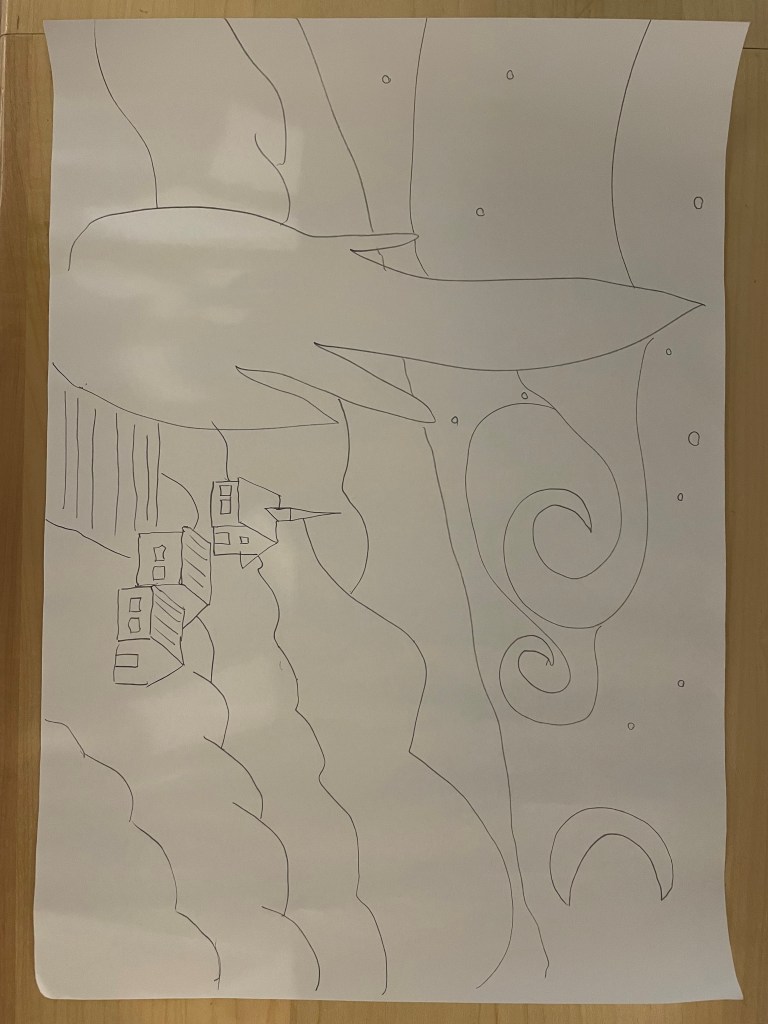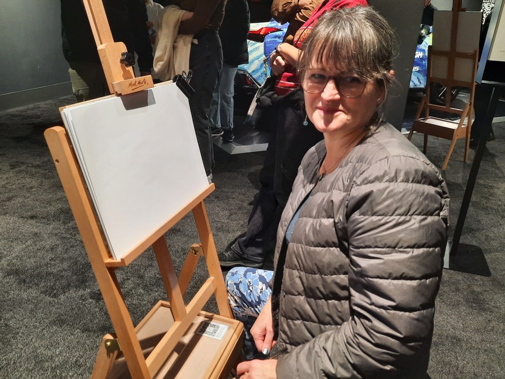 We spent about an hour in the exhibition hall and then engaged in an opportunity to play at being an artist!. We took our seats at the easel and followed the five-minute demonstration to create our own masterpiece. It was a fun an unexpected challenge.