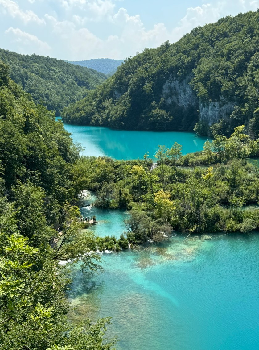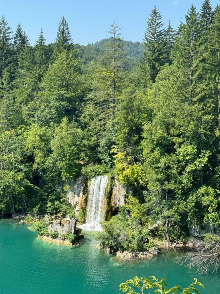 Day five of our trip saw us depart our crazy little apartment in Zagreb, head across town by tram to the main bus stationby 10am to catch the two hour ride to Plitvice National Park. It was an airconditioned coach which made the trip very comformable and we shared a late breakfast of riveta and gouda which made a considerable mess.
