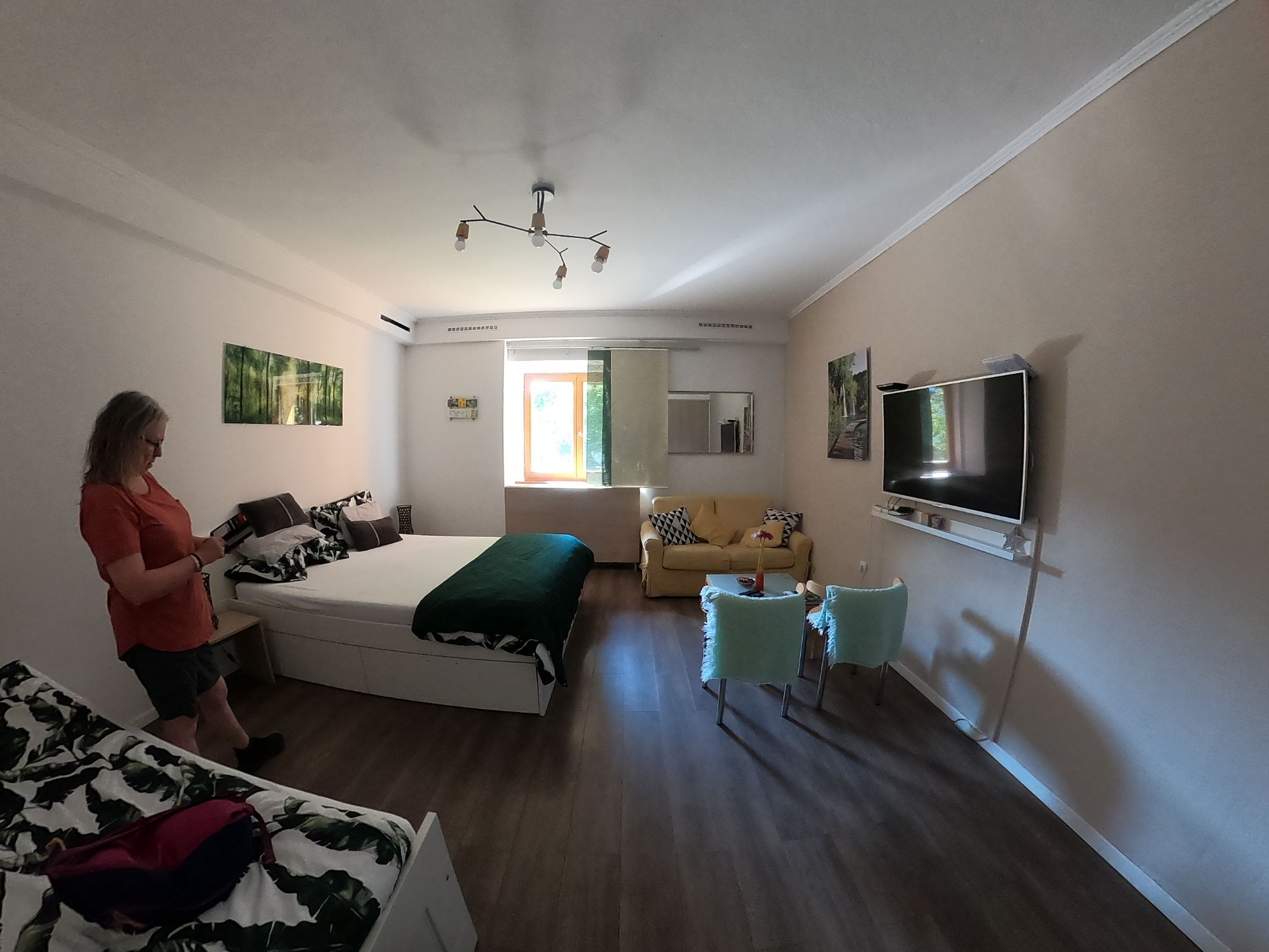 We had booked a studio apartment for one night so that we could get settled before attacking the 6-8 hour full lap of the lakes. As you can see we were spoilt and there was a full kitchen behind me sowe had schnitzel, chips, peas and gravy!!