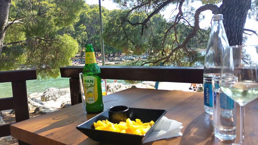 To escape the heat and crowds, we caught a bus to the natural reserve and stayed on until the end of the line. There was a relaxing swimming area and a cage/bar. You can go nowhere in Croatia without finding someone to sell water or beer.