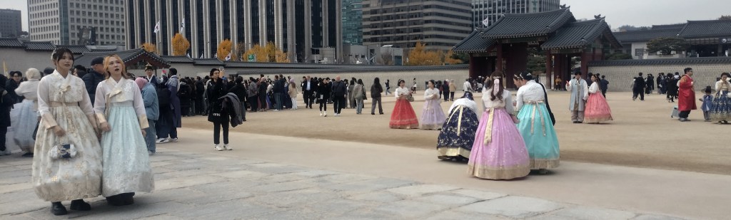 In the morning, we visited Gyeongbokgung Palace which was home to the Joseun dynasty from 1395. What struck us most was how quiet, orderly and deserted the tourist attraction was. Yes, there were a few tour groups and locals around, but not the mass of humanity that normally accompanies exotic and historic sites.