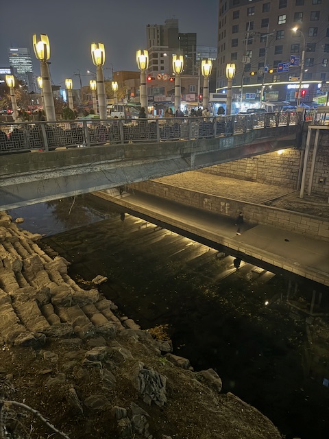 We rounded off the day with a brisk walk along the Cheonggyecheon. This scenic rivulet/stream walkway was a polluted channel in the 1970’s so the city converted into a covered road. In the early 2000’s they ripped up the road and made it into an 8.4km city rivulet pedestrian walk. It was a beautiful evening walk, but the full return trip would have been a bit too much. We turned back after 45 minutes and headed for Korean BBQ dinner. Home, exhausted by 8:30pm.