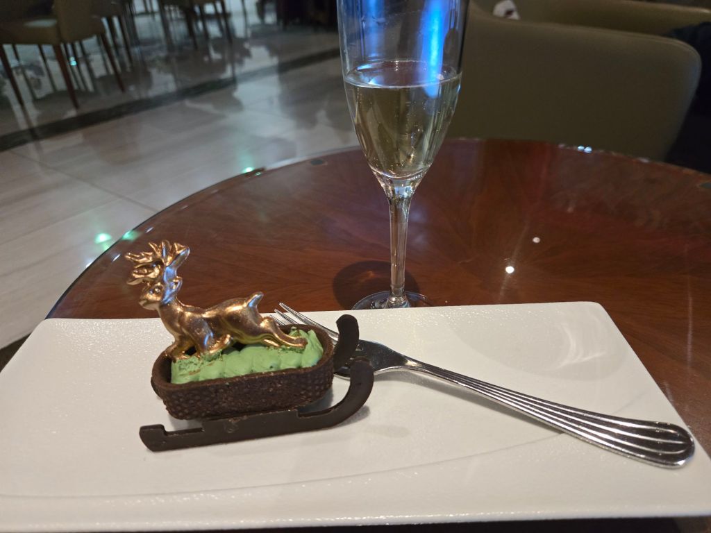 I was most impressed with the selection of bubbles, Moet, and this very sweet Chrsitmas dessert.
