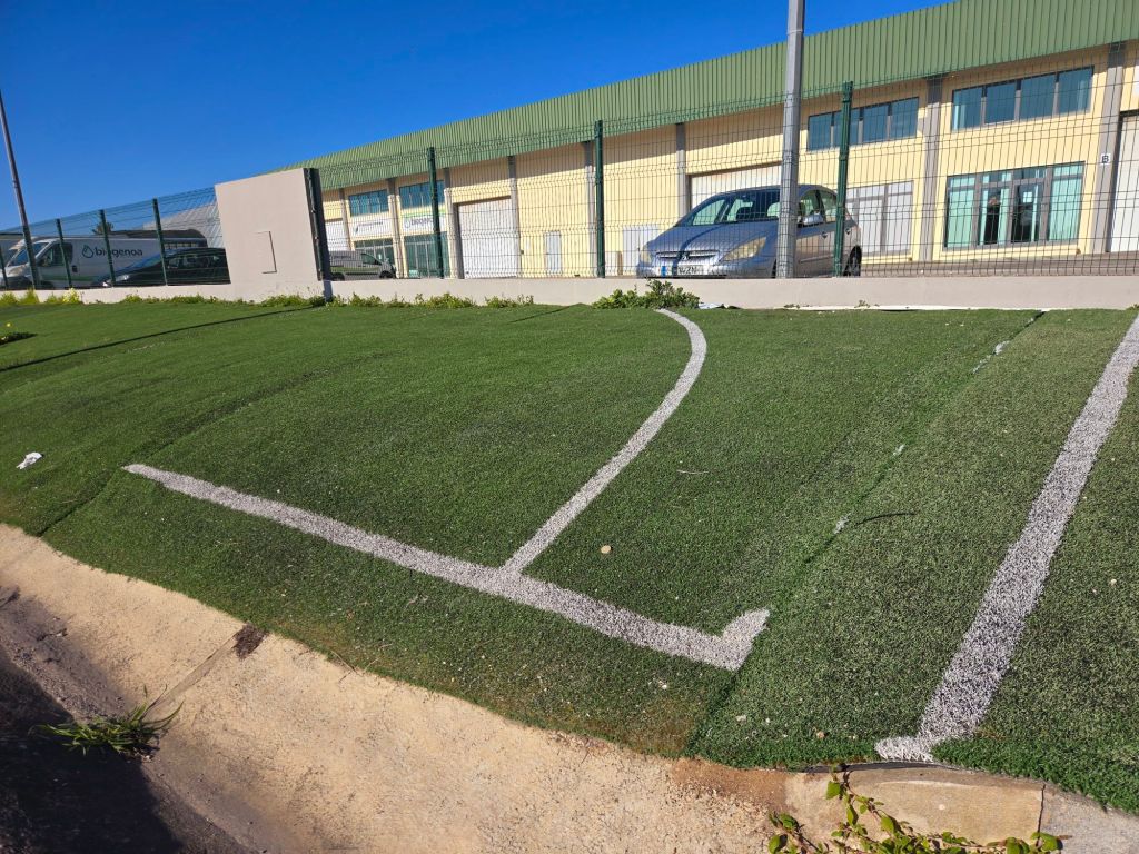We walked for 45 minutes from the ferry terminal to the township of Montijo in the heat, with only the amusing application of a secondhand soccer field turf for relief.