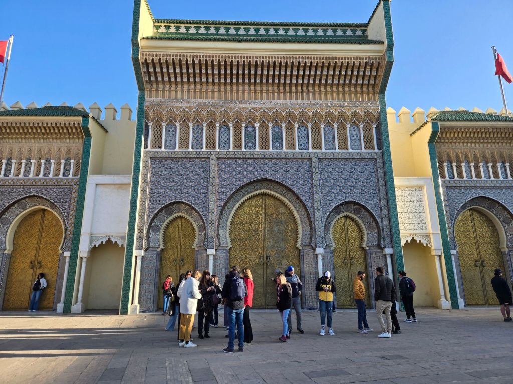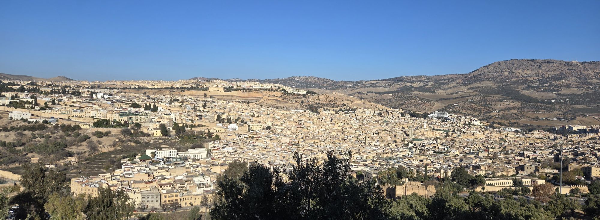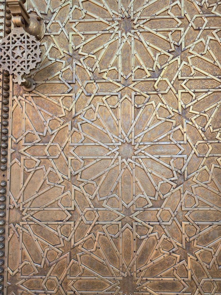 Today we changed guides for the trip through the famous maze that is the Fes Medina. We met Layla at the hotel, and she provided background comentary as we drove to our first stop, the Palace Gates. We spent some time understanding the hidden messages and meanings in the shapes and colours of the mozaics and bronze embossing on the doors. Messages about the sky, stars, mountains and faith.