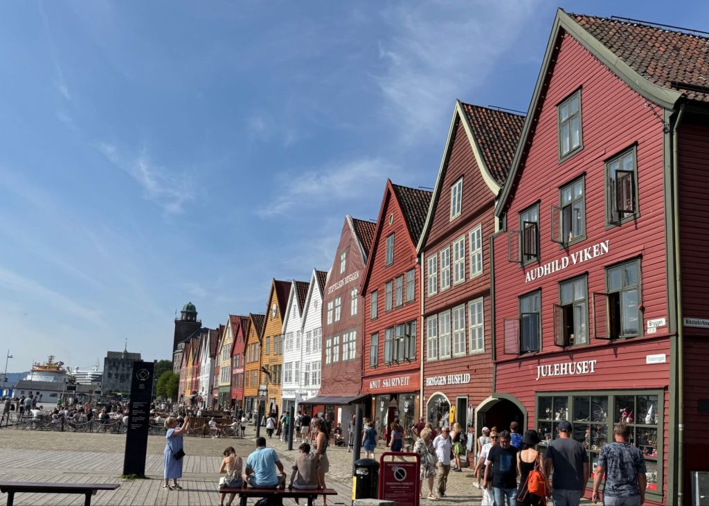 Finally, at last, we discovered where all the people in Scandnavia are. they are in Bergen. It was flooded with people pushing and jostling, and eating, and scootering everywhere. It was busy. It was wonderful to see.