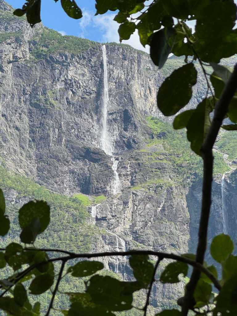 Along the way we saw small communities, waterfalls and stunning mountains plunging into the water. Lots of people were camping by the waters edge, clearly having kyaked up the fijord with their gear and setting up with tents and campfires. i was attacked by a march fly on our hike, so hoping they are able to keep the critters at bay.